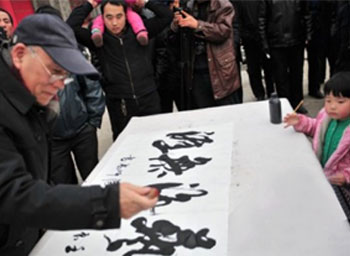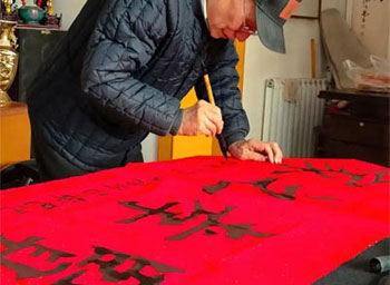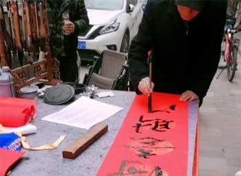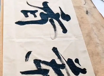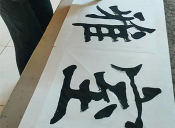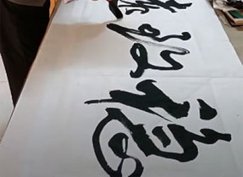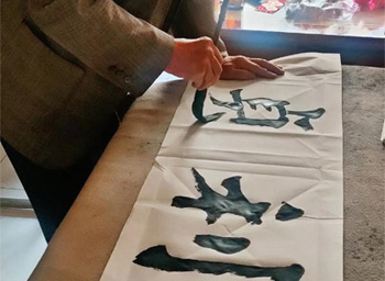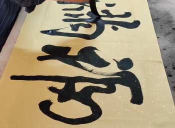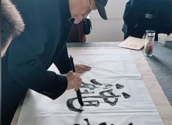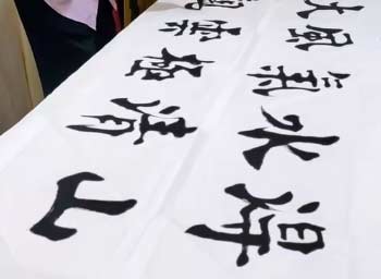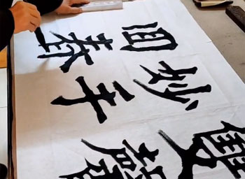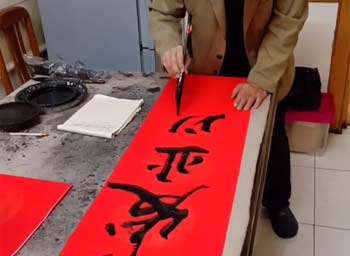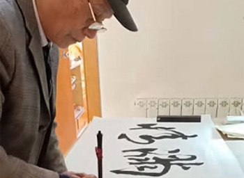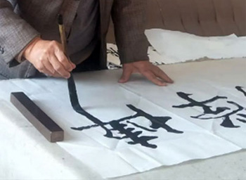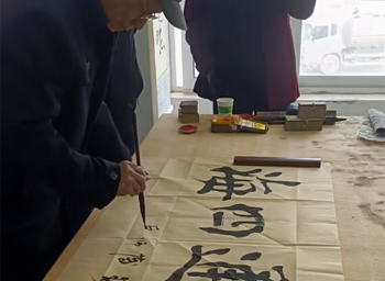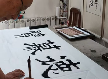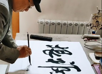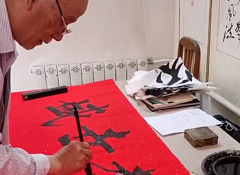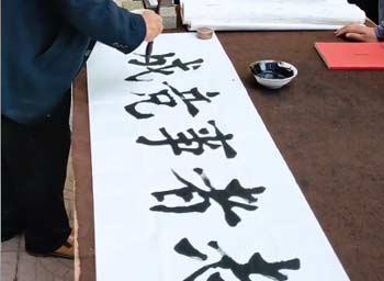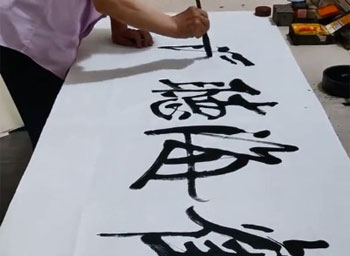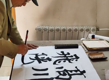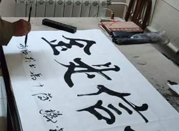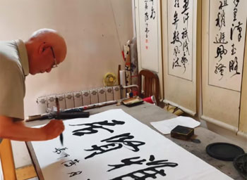 书法家薄师禹,年不过五十,两鬓已经披霜,头顶“光前裕后”。大家说,那是写的太多了。
