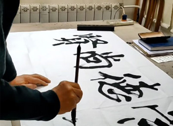 他不拘泥于古人那一套,而是根据群众的审美情趣,在立意、运笔、用墨、结体、章法等方面进行创新,逐渐形成了他多体俱能“复合本领”。他用笔大胆,结构开拓,功力遒劲,气韵生动的艺术风格,博得了群众的喜爱和专家的赏识。
