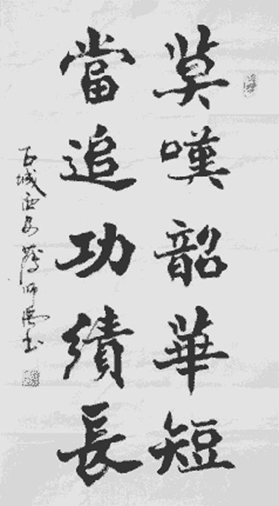 他不希望他的字突破的像绘画现代派,让人认不得;他也不欣赏“以丑为美”的现代意识,把字突破得像小学娃娃水平,歪歪扭扭。他明白,艺术就是创造。他更明白,如果创造到群众不买帐时,这样的创造毫无价值。他说:我当初学字,原就是为了把字写得好看、耐看。